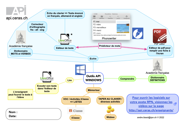 Vous pouvez bénéficier des outils API installés sur les postes informatiques de votre école (drapeau neuchâtelois=RPN).
