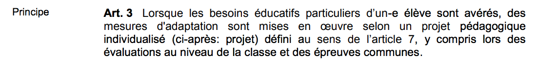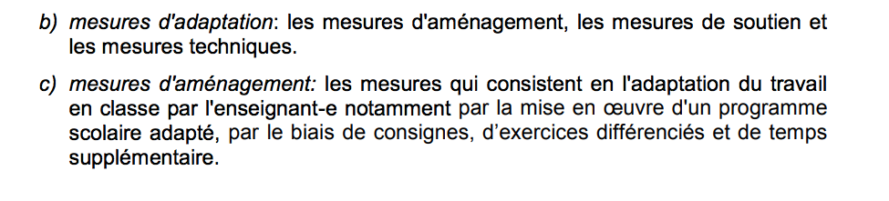 *l’Arrêté relatif aux mesures d’adaptation et de compensation destinées aux élèves de la scolarité obligatoire ayant des besoins éducatifs particuliers