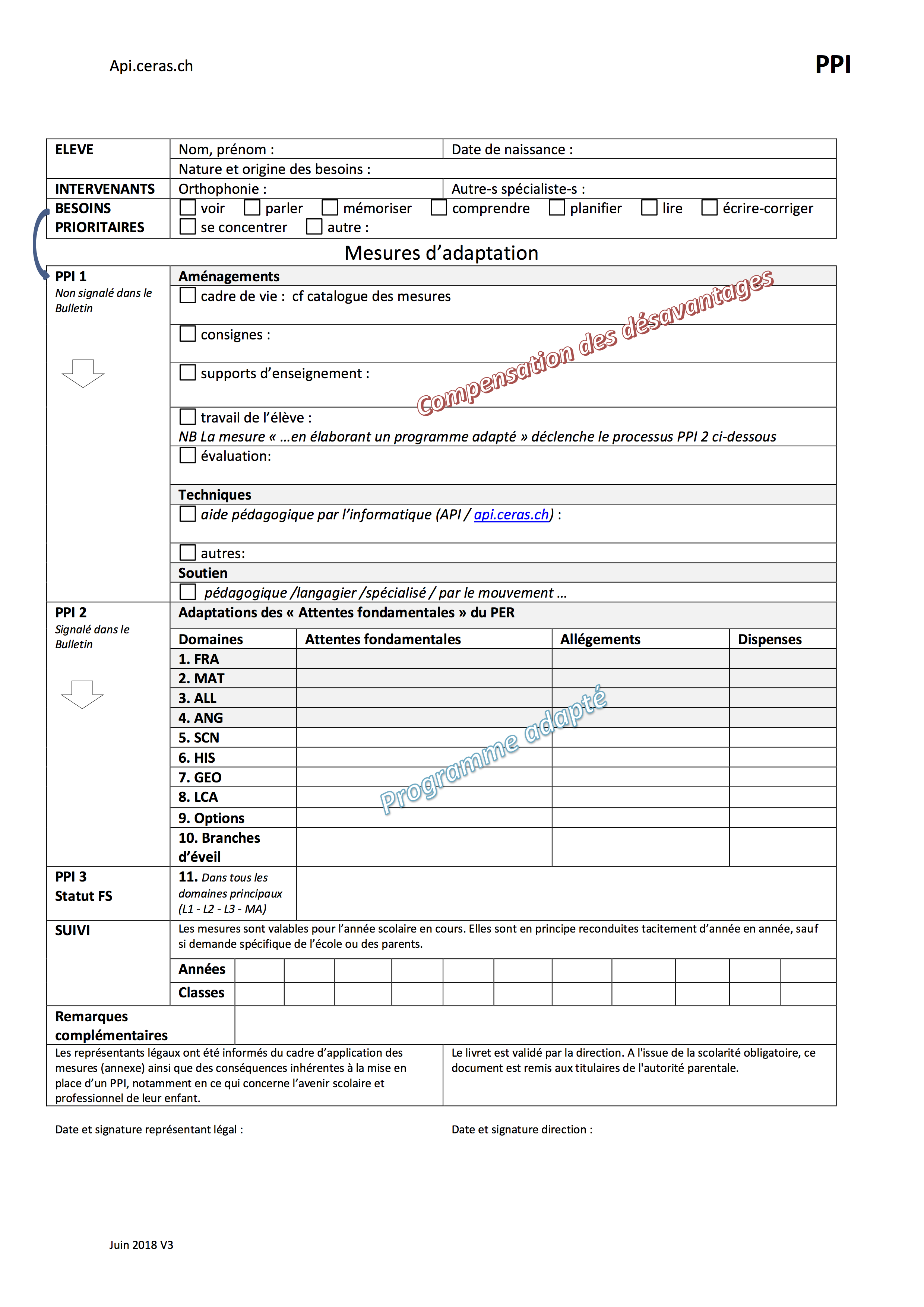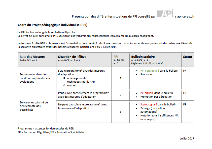 Les nombreuses questions reçues concernant la validation des mesures techniques des élèves nous ont poussé à publier cette réflexion opérationnelle de « l’Arrêté relatif aux mesures d’adaptation et de compensation destinées aux élèves de la scolarité obligatoire ayant des besoins éducatifs particuliers ». Notre principale suggestion est de graduer le PPI de l’élève en 3 situations scolaires distinctes (tirées des phrases de l’arrêté) afin de clarifier l’encadrement. Ces situations sont évolutives et hiérarchisées pour permettre de mieux accompagner les élèves en différenciant davantage leur situation.